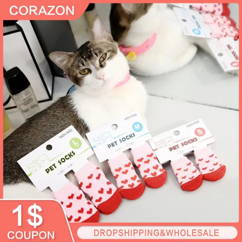 These high-quality cotton socks are designed for both cats and dogs. They help keep paws warm in cold weather while preventing dirt, floor scratches, and furniture damage.